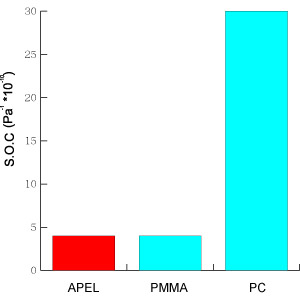 APEL的水蒸氣透過系數(coefficient of moisture vapor permeability, CWVP)是所有可取得的透明樹脂中最低的,因此,APEL最適用于耐濕氣性容器與薄膜的應用。