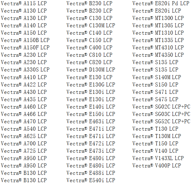 C、LCP加入高填充劑或合金(PSF/PBT/PA):作為集成電路封裝材料、代替環氧樹脂作線圈骨架的封裝材料;作光纖電纜接頭護套和高強度元件;代替陶瓷作化工用分離塔中的填充材料。代替玻璃纖維增強的聚砜等塑料(宇航器外部的面板、汽車外裝的制動系統)。