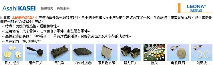 | 14G15 1402G | 增強的強度和剛性,玻璃纖維含量為15%和33%。具有良好的抗熱老化性。 | 加熱器水箱,燃料噴射器,防滑剎車系統感測器,以及汽車其他機罩下零件 。 |