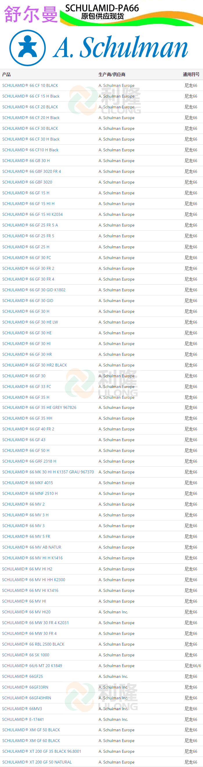 [塑料簡介:]利隆塑料專業(yè)經(jīng)營美國舒爾曼PA66,美國SCHULAMID品牌PA66塑膠原料,想要了解尼龍PA66塑膠原料,舒爾曼PA66原料價(jià)格,PA66性能用途,PA66型號(hào)和PA66物性的客戶,歡迎來電來函咨詢