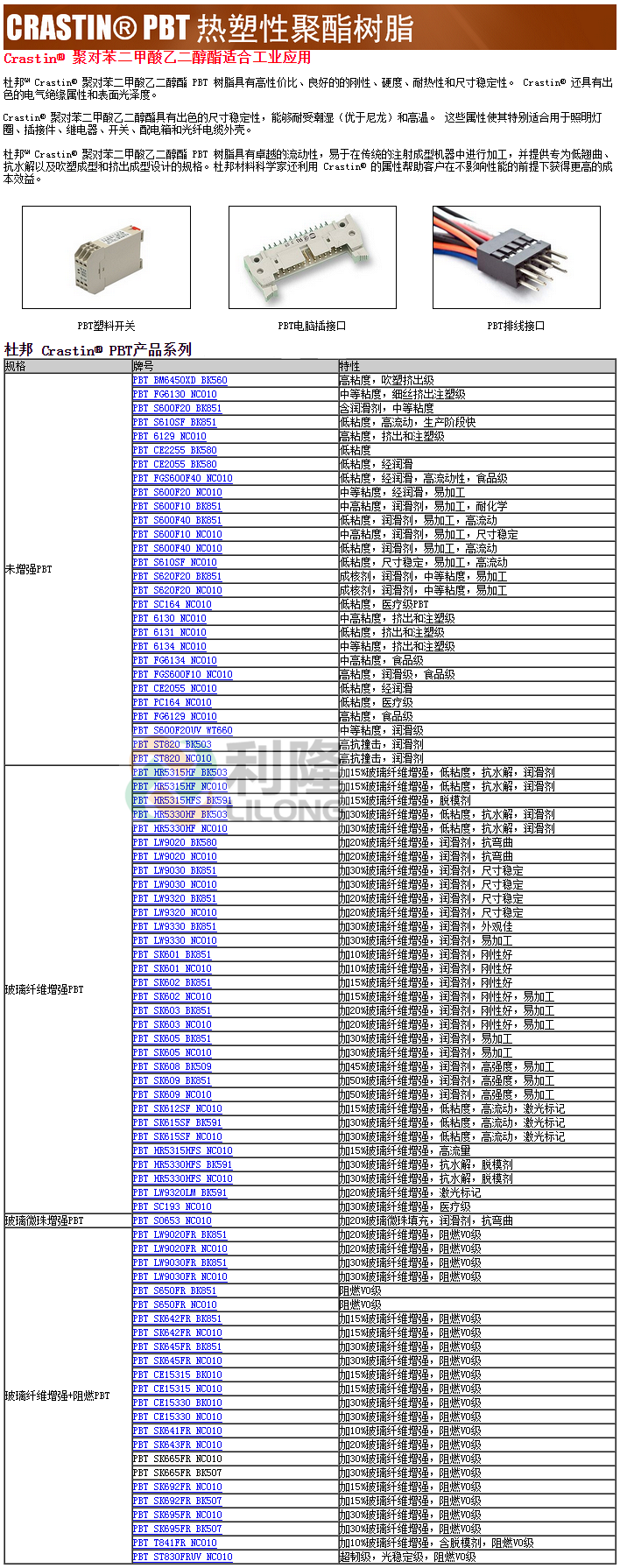 >> 美國杜邦CRASTIN系列PBT塑膠原料