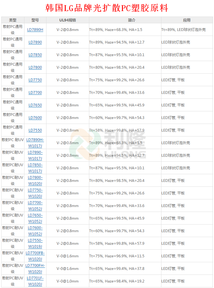 >> 韓國LG品牌LUPOY系列透明防火加纖光擴散PC塑膠原料