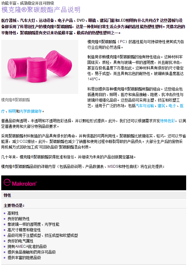 >> 德國(guó)拜耳Makrolon模克隆PC塑膠原料