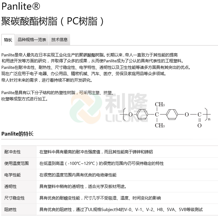 >> 日本帝人Panlite系列聚碳酸脂PC塑膠原料