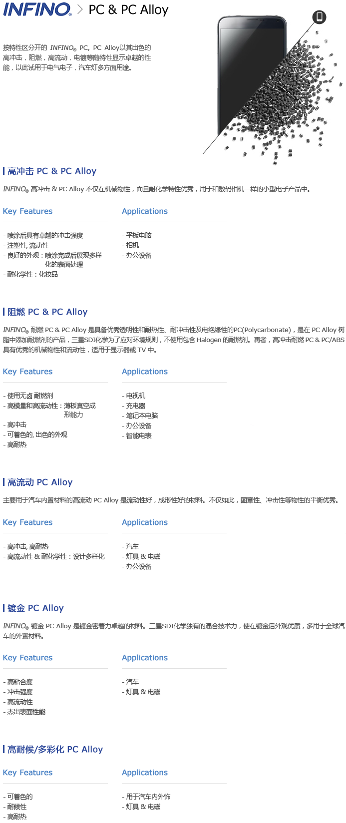 >> 韓國三星INFINO系列PC/ABS工程塑料