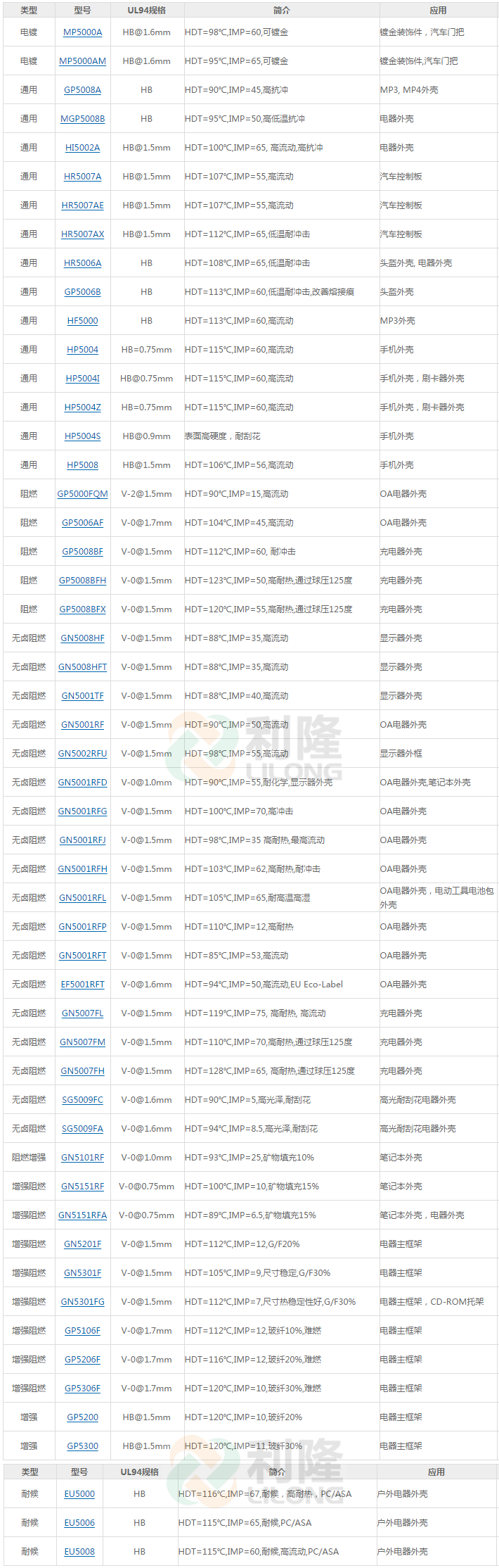 [塑料簡介:]利隆塑料經營國內外品牌POM塑膠原料,PC塑膠原料,PBT塑膠原料,PEI塑膠原料,LCP塑膠原料,PEEK塑膠原料,PPA塑膠原料,PPS塑膠原料,PPSU塑膠原料,ABS塑膠原料,歡迎廣大客戶來電來函
