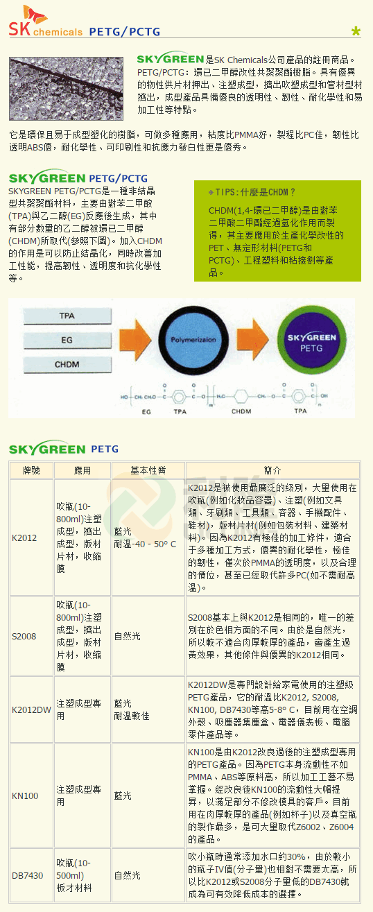 >> 韓國SKYGREEN不含BPA食品級PETG塑膠原料