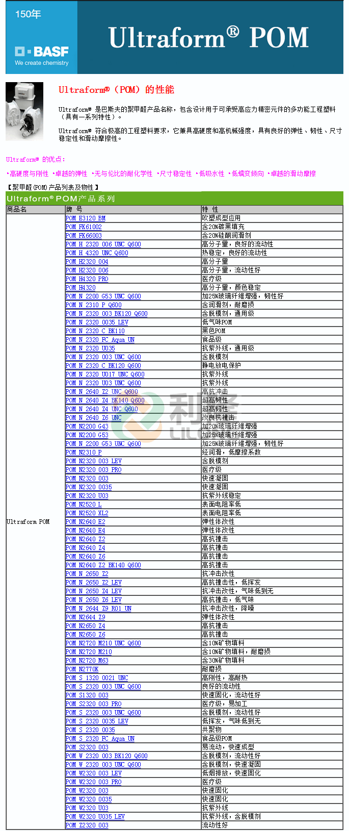 [塑料簡介:]利隆塑料專業經營德國巴斯夫POM聚甲醛ULTRAFORM品牌塑膠原料,想要了解聚甲醛POM塑膠原料,巴斯夫POM價格,POM性能用途,POM型號和POM物性的客戶,歡迎來電來函咨詢