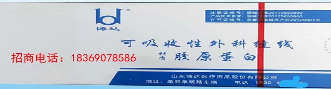 山東博達(dá)醫(yī)療用品股份有限公司是生產(chǎn)可吸收性外科縫線專業(yè)廠家,主要產(chǎn)品有可吸收縫合線、內(nèi)窺鏡圈套線、穴位埋線、快吸收美容線、醫(yī)用羊腸線膠原蛋白線以獨(dú)特的生物技術(shù)提取了健康哺乳動(dòng)物內(nèi)臟的膠原蛋白為基材,采用先進(jìn)獨(dú)特的工藝加工而成,線體的主要成分為高純度膠原蛋白,并獲得了國(guó)家發(fā)明專利,頒布了YZB/國(guó)6301-2013《可吸收性外科縫線》產(chǎn)品標(biāo)準(zhǔn),并通過(guò)了ISO9001:2008和ISO13485:2003質(zhì)量管理體系認(rèn)證。