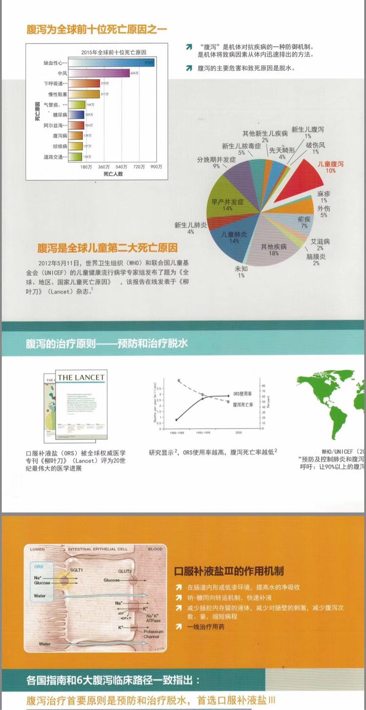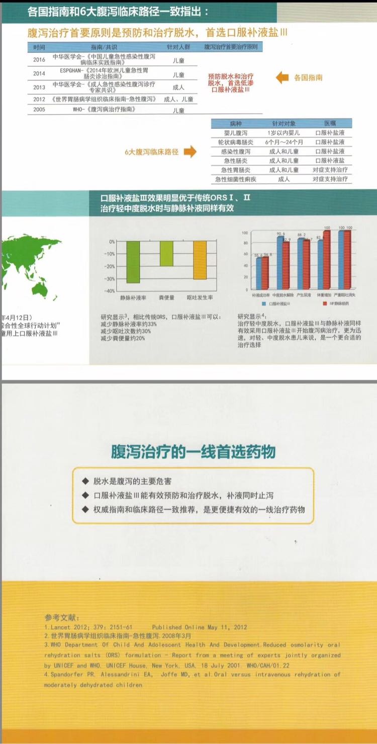 | 產(chǎn)品賣點(diǎn) | ●腹瀉治療的一線**藥物 ●規(guī)范治療腹瀉,WHO和UNICEF共同**口服補(bǔ)液鹽Ⅲ ●國內(nèi)外指南**,列入多病種臨床路徑 ●列入2015年婦兒?品菍@幤纺夸 ●列入2012年《國家基本藥物目錄》 ●6大腹瀉臨床路徑 |