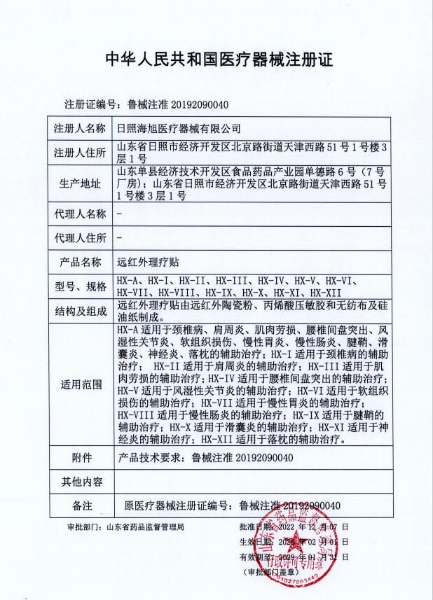 生產(chǎn)企業(yè): 日照海旭醫(yī)療器械有限公司