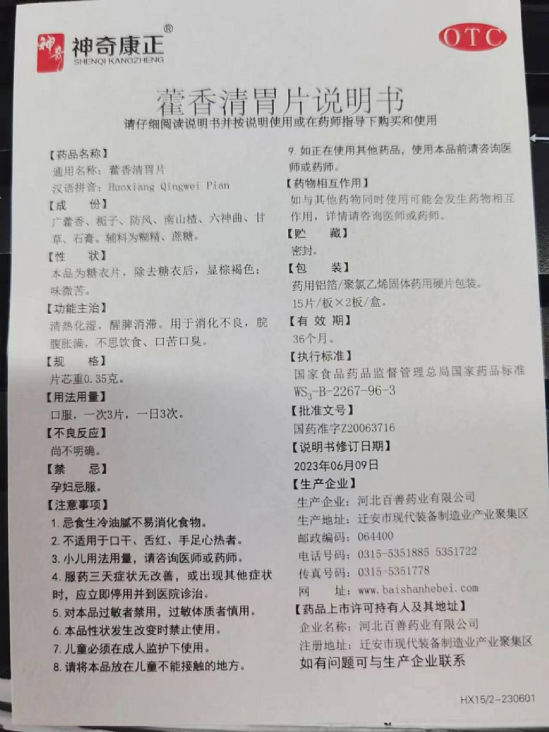 通用名稱: 藿香清胃片