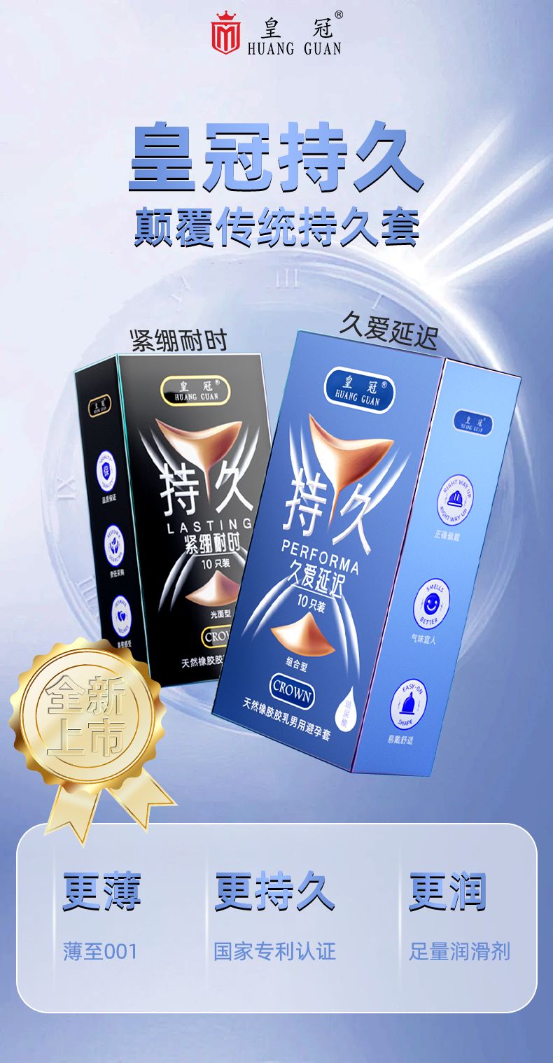 | 補(bǔ)充說明 | 皇冠避孕套采用天然乳膠為原料經(jīng)加工制成,潤滑劑為二甲基硅油,對(duì)天然乳膠過敏者慎用,或使用前咨詢醫(yī)生,該避孕套為一次性用品,切勿重復(fù)使用,使用后請(qǐng)妥善棄置。該避孕套潤滑劑中不含殺精劑或藥物成分;使诒茉刑自谡_使用下,有助于降低受孕風(fēng)險(xiǎn)及減少某些性傳播疾病感染的風(fēng)險(xiǎn)。 |