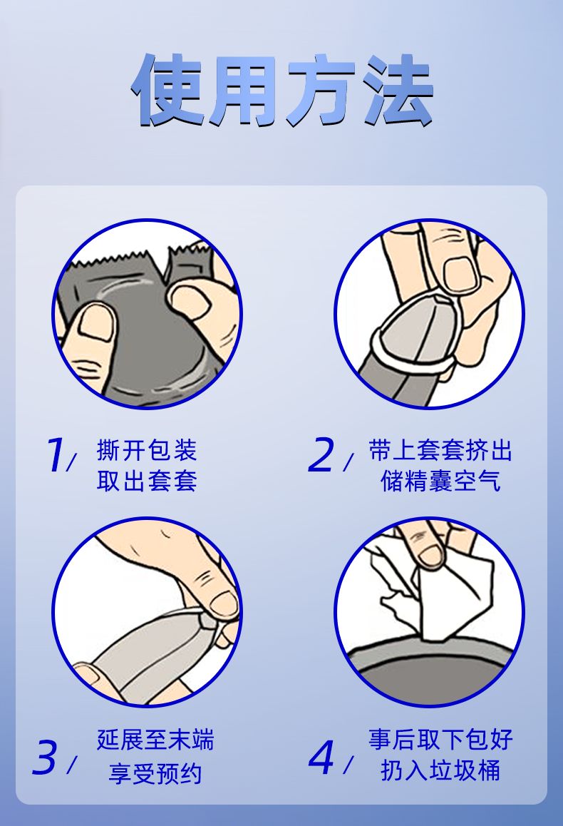 | 使用方法 | *使用本品前,請(qǐng)謹(jǐn)慎地從包裝邊部的“V”形口處撕開包裝請(qǐng)勿使用剪刀或者其它利器。從包裝中取出時(shí)應(yīng)小心,以免被指甲、首飾等損壞避孕套。 *應(yīng)在勃起的陰莖與對(duì)方身體有任何接觸之前戴上避孕套,以防止性傳播疾病感染和受孕。 *如果感覺到避孕套滑脫或者太緊,應(yīng)停止并加以檢查以防止避孕套破裂。 *射精后,在陰莖根部穩(wěn)妥地摁住避孕套,并盡快撤出陰莖*請(qǐng)將使用后的避孕套用紙巾包好,放進(jìn)垃圾桶內(nèi)。不要棄于馬桶中,以免造成堵塞。 |
