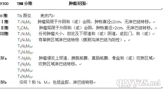 3、臨床分期:外陰癌的臨床分期標(biāo)準(zhǔn)目前有兩種,一種是國際婦產(chǎn)科聯(lián)合會(huì)(FIGO)的分期法,另一種是國際抗癌協(xié)會(huì)(UICC)的TNM的分期法。此兩種分期法各有其優(yōu)點(diǎn)。外陰癌的分期標(biāo)準(zhǔn):