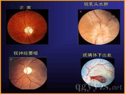 ①視乳頭水腫:是最常見的視乳頭異常,表現(xiàn)為視乳頭異常粉紅或鮮紅,邊緣模糊,血管被腫脹的視乳頭拱起.靜脈擴張,可見出血和滲出,是顱內壓增高的客觀體征.