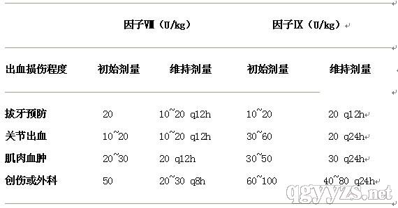 ~30h。 VIII因子的補(bǔ)充至少每天2次輸注;因子IX則可每天1次輸注。輕度出血維持3天;中度至重度出血,維持7 ~14天。維持劑量可減半。