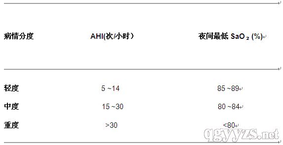 睡眠呼吸暫停低通氣綜合征的病情分度: