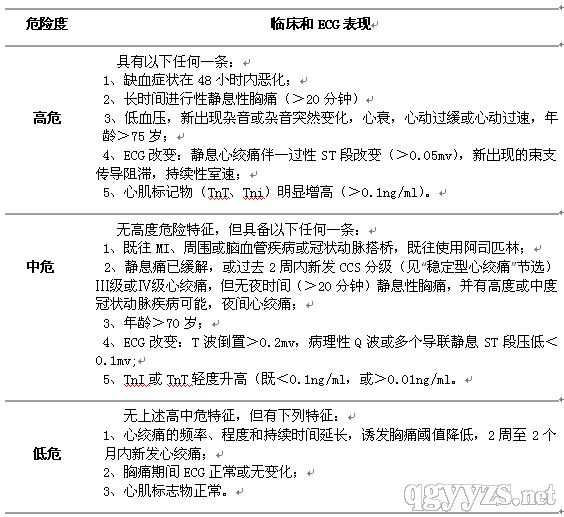 美國(guó)心臟病學(xué)會(huì)/美國(guó)心臟病協(xié)會(huì)(ACC/AHA)非ST段抬高型ACS危險(xiǎn)性分層評(píng)判標(biāo)準(zhǔn)