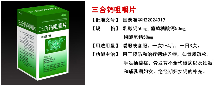 | 【功能主治】 | 用于兒童、孕婦及哺乳期婦女鈣的補(bǔ)充。 |