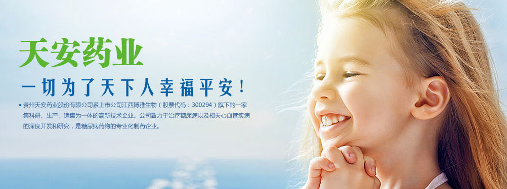 貴州天安藥業(yè)股份有限公司系上市公司赤天化旗下的一家集科研、生產(chǎn)、銷(xiāo)售為一體的高新技術(shù)企業(yè),獲“貴陽(yáng)市十家重點(diǎn)制藥企業(yè)”稱(chēng)號(hào)。公司致力于治療糖尿病以及相關(guān)并發(fā)癥藥物的深度開(kāi)發(fā)和研究。公司經(jīng)營(yíng)理念:天安——一切為了天下人幸福平安!公司發(fā)展戰(zhàn)略:以生物工程技術(shù)為龍頭,天然中成藥物生產(chǎn)為支柱,糖尿病系列用藥為主要開(kāi)發(fā)方向的糖尿病專(zhuān)業(yè)化制藥企業(yè)。公司擁有健全的營(yíng)銷(xiāo)網(wǎng)絡(luò),在全國(guó)三十多個(gè)省、市、自治區(qū)建有辦事處或銷(xiāo)售網(wǎng)點(diǎn),產(chǎn)品出口東南亞地區(qū)。