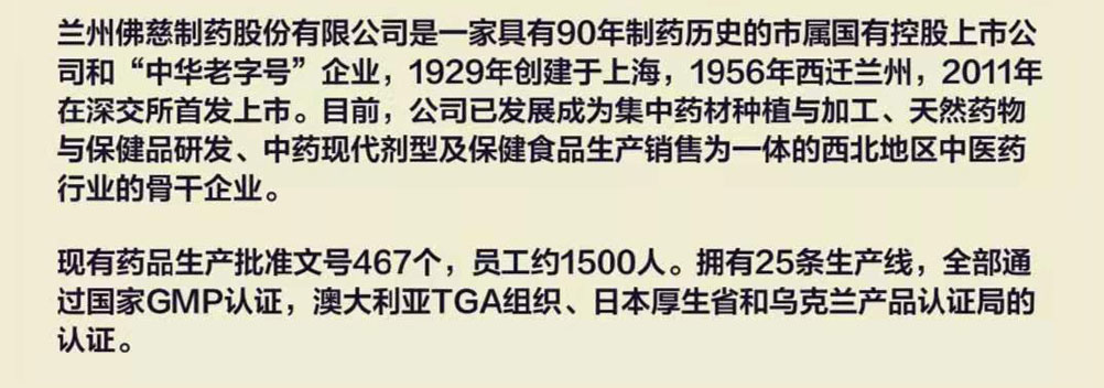 | 公司名稱:蘭州佛慈制藥股份有限公司 | ||