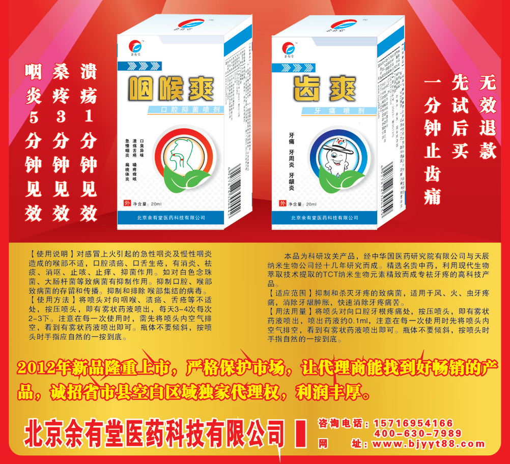 北京余有堂醫(yī)藥科技有限公司產(chǎn)品展臺 技術(shù)支持:環(huán)球醫(yī)藥招商網(wǎng) (招商頻道-醫(yī)藥代理-otc-處方藥) 版權(quán)所有,違版必究