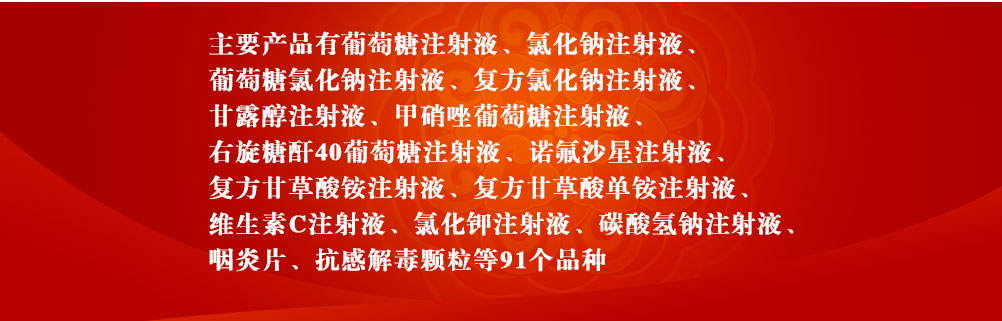 公司是陜、甘、寧、蒙、晉五省接壤區(qū)域一家西藥制藥企業(yè),現(xiàn)有大容量注射劑、小容量注射劑、片劑、膠囊劑和顆粒劑五個劑型。2003年通過國家GMP認證,2008年第二次通過國家GMP認證。主要產(chǎn)品有葡萄糖注射液、氯化鈉注射液、葡萄糖氯化鈉注射液、復方氯化鈉注射液、甘露醇注射液、甲硝唑葡萄糖注射液、右旋糖酐40葡萄糖注射液、諾氟沙星注射液、復方甘草酸銨注射液、復方甘草酸單銨注射液、維生素C注射液、氯化鉀注射液、碳酸氫鈉注射液、咽炎片、抗感解毒顆粒等91個品種。