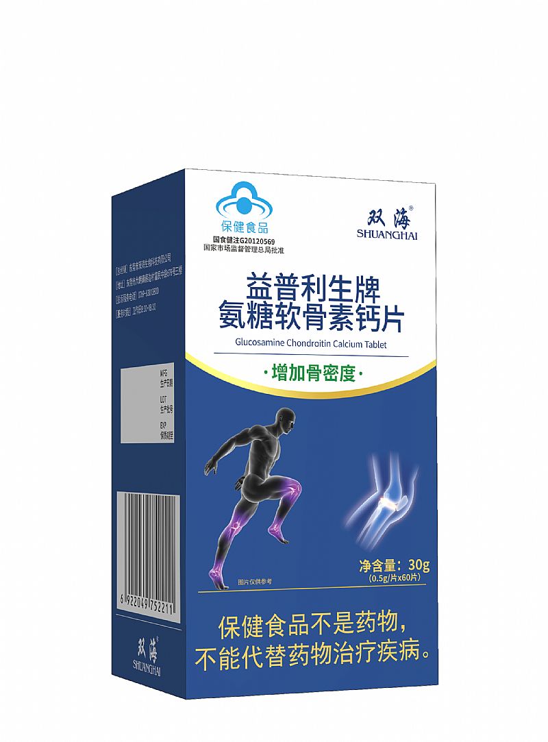 | 【成 份】 | [原料]碳酸鈣、D-氨基葡萄糖鹽酸鹽、硫酸軟骨素鈉、維生素D:粉(膽鈣化醇、阿拉伯膠、白砂糖、食用玉米淀粉、辛,癸酸甘油酯、麥芽糊精、抗壞血酸鈉、二氧化硅) [輔料]淀粉薄膜包衣劑(羥丙基甲基纖維素、二氧化鈦、聚乙二醇)、聚維酮K30、硬脂酸鎂 |