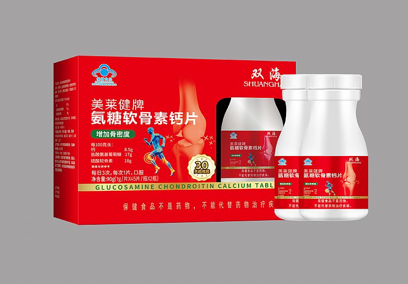 | 【成 份】 | [原料]碳酸鈣、D-氨基葡萄糖鹽酸鹽、硫酸軟骨素鈉、維生素D:粉(膽鈣化醇、阿拉伯膠、白砂糖、食用玉米淀粉、辛,癸酸甘油酯、麥芽糊精、抗壞血酸鈉、二氧化硅) [輔料]淀粉薄膜包衣劑(羥丙基甲基纖維素、二氧化鈦、聚乙二醇)、聚維酮K30、硬脂酸鎂 [標(biāo)志性成分及含量]每100g含:鈣12g、維生素D3160μg、D-氨基葡萄糖鹽酸鹽22g、硫酸軟骨素8.5g |