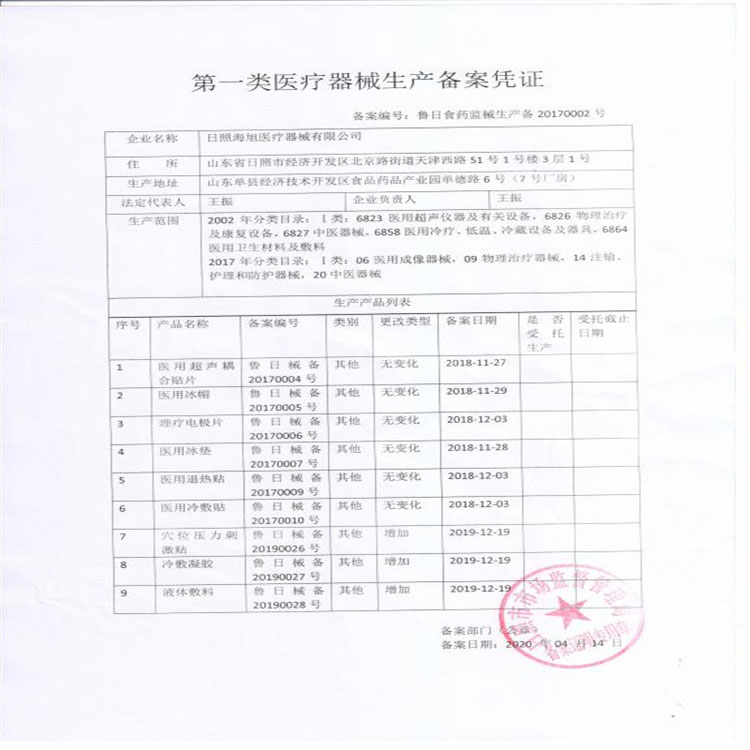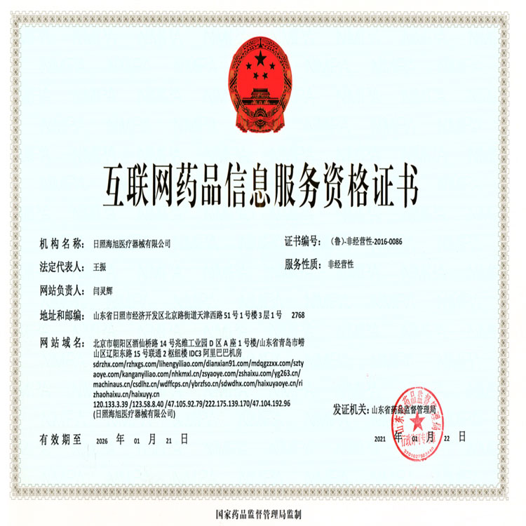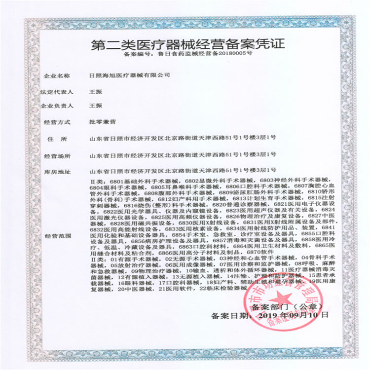 | 公司名稱:日照海旭醫(yī)療器械有限公司 | |