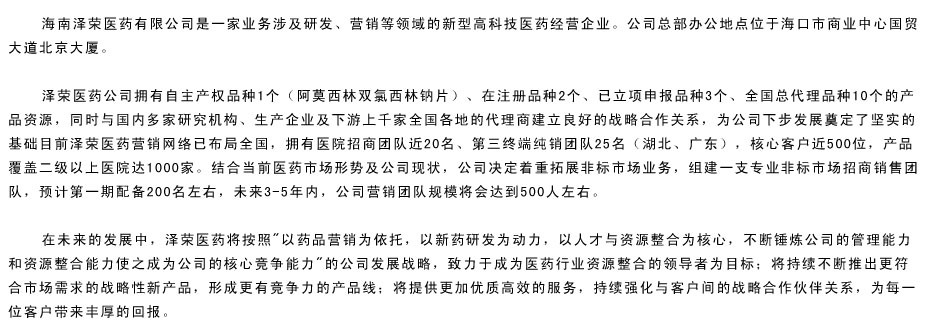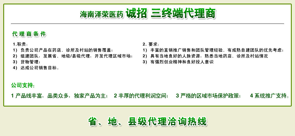 海南澤榮醫(yī)藥有限公司產(chǎn)品展臺 技術(shù)支持: 環(huán)球醫(yī)藥招商網(wǎng) (招商頻道-醫(yī)藥代理-otc-處方藥) 版權(quán)所有,違版必究