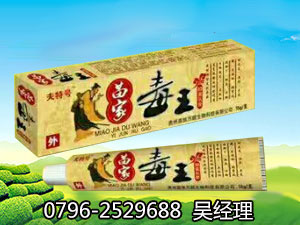 | 成 份 | 蝎毒、狼毒、蜂毒、紫草、白鮮皮、野菊花、升麻、蛇床子、黃柏、地膚子的提取物、薄荷腦、冰片、醋酸氯已定0.1%-0.3%(m/v)等。 |