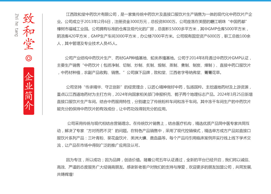 | 公司名稱:江西致和堂中藥飲片有限公司 | |