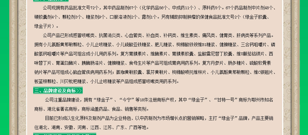 湖北綠金子藥業(yè)有限責任公司產(chǎn)品展臺 技術支持:環(huán)球醫(yī)藥招商網(wǎng) (招商頻道-醫(yī)藥代理-otc-處方藥) 版權所有,違版必究