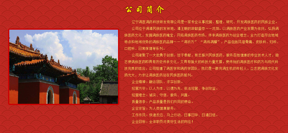 遼寧滿醫(yī)滿藥科技研發(fā)有限公司產(chǎn)品展示列表, 技術(shù)支持:環(huán)球醫(yī)藥招商網(wǎng) (招商頻道-醫(yī)藥代理-otc-處方藥)     版權(quán)所有,違版必究
