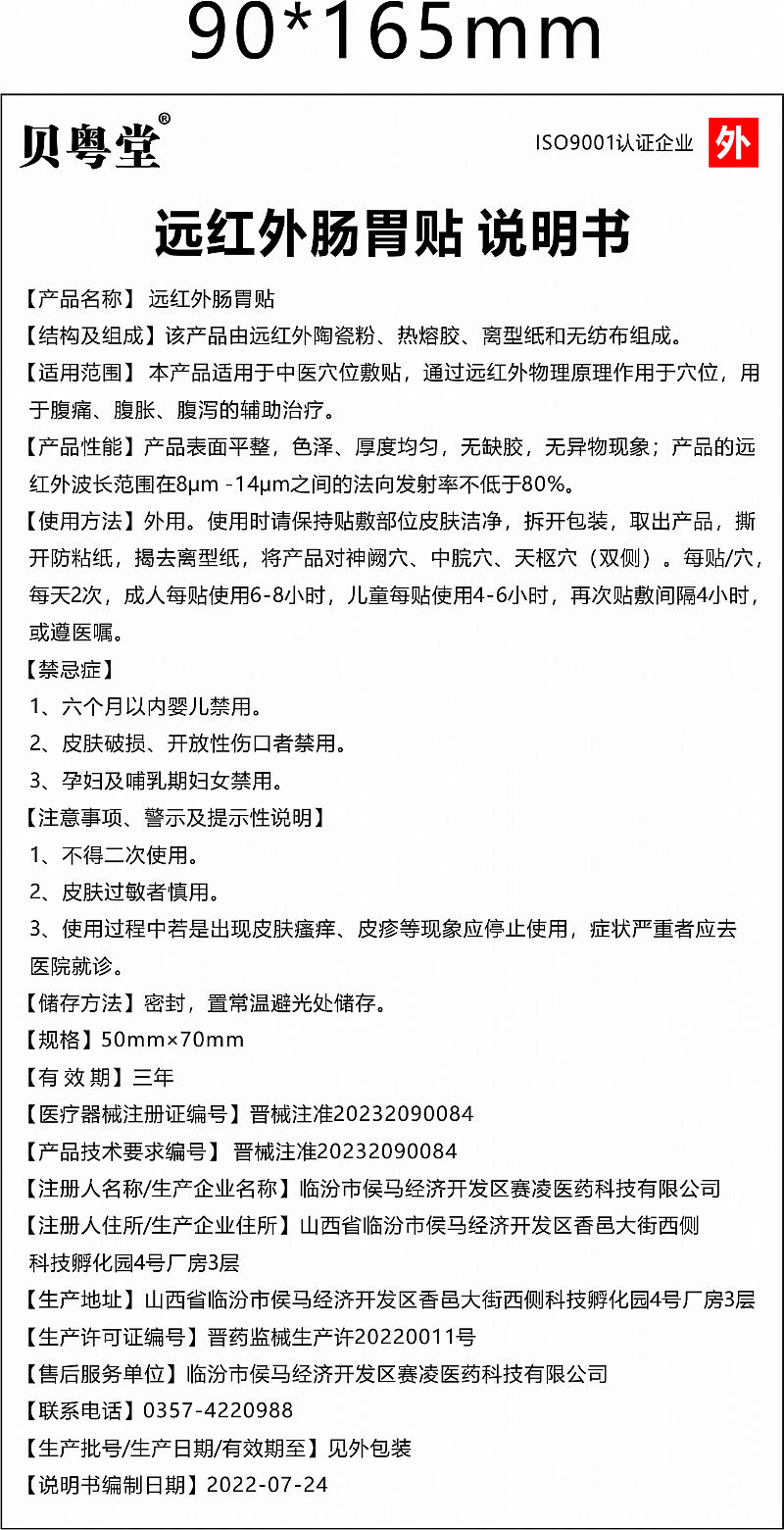 | 產(chǎn)品用途 | 本產(chǎn)品適用于中醫(yī)穴位敷貼,通過(guò)遠(yuǎn)紅外物理原理作用于穴位,用于腹痛、腹脹、腹瀉的輔助治療。 |