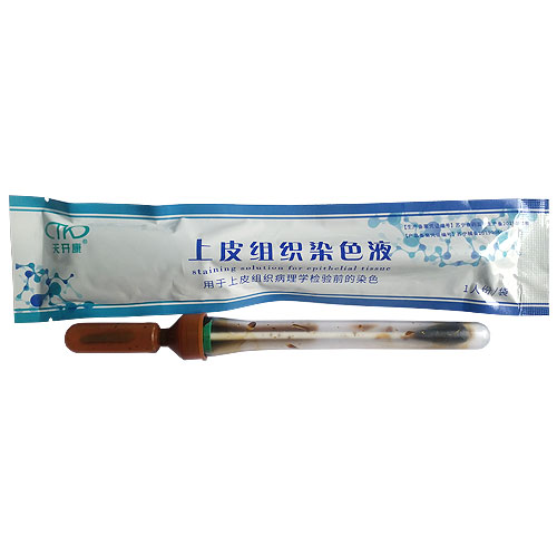 | 【用法用量】 | 取出全程封閉式婦科醫(yī)用移液顯色采集器,折斷容器上部尾標,使上皮組織染色液自動滲入下部棉簽套管中。待溶液完全流出,棉簽充分吸取溶液后,取出棉簽;再用力涂布于宮頸口處,涂抹3-5圈,按壓5秒鐘,取出棉簽,觀察棉簽變色情況,30秒后觀察結(jié)果無效。同時觀察上皮組織染色液的反應區(qū)。 |