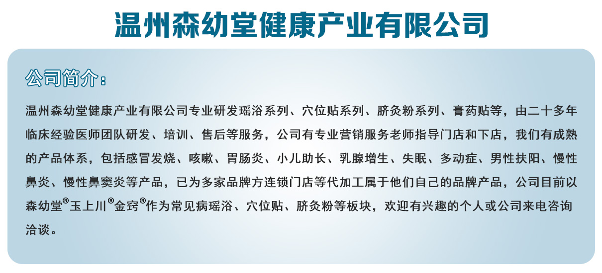 | 公司名稱:溫州森幼堂健康產(chǎn)業(yè)有限公司 | |