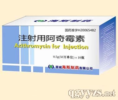 | 用法用量 | 本品適用注射用水充分溶解,配置成0.1g/ml,再加入250ml或500ml的0.9%氯化鈉注射液或5%葡萄糖注射液中,阿奇霉素濃度為1.0-2.0mg/ml,然后靜脈滴注。詳見說明書 |