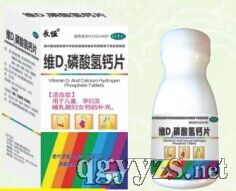 | 【成 份】 | 本品為復(fù)方制劑,每片含維生素D2 500單位,磷酸氫鈣150毫克(相當(dāng)于鈣36毫克),輔料為:蔗糖、檸檬黃、香蘭素、硬脂酸鎂適量。 |