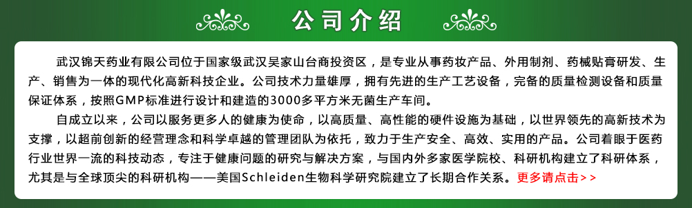 | 公司名稱:武漢錦天藥業(yè)有限公司 | |