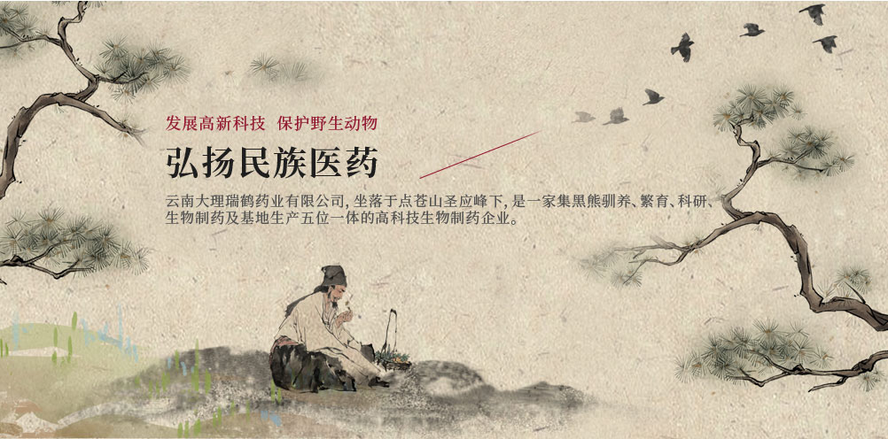 云南大理瑞鶴藥業(yè)有限公司坐落于蒼山洱海之畔,創(chuàng)始于1984年,旗下“瑞鶴堂”為云南***,公司始終以“發(fā)展高新科技,保護野生動物,弘揚民族醫(yī)藥”為宗旨。依托大理當?shù)刎S富的動植物資源,經(jīng)過30多年的努力,現(xiàn)已成為一家以熊膽 系列產(chǎn)品的研發(fā)、生產(chǎn)、銷售為一體的高新科技白族制藥企業(yè)。