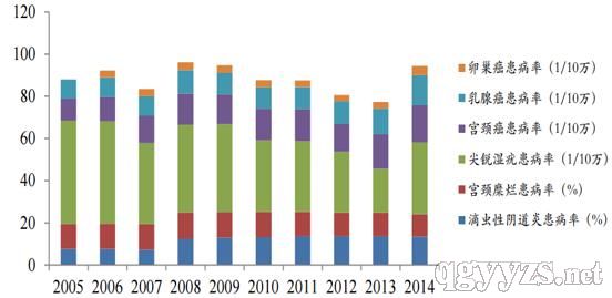 近年中國(guó)女性婦科疾病患病率
