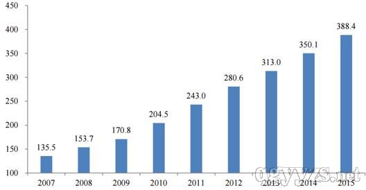 婦科疾病的高患病率也導(dǎo)致了婦科用藥市場(chǎng)的規(guī)模提升,在2007年,我國(guó)的婦科用藥市場(chǎng)約為 135.5 億元,而到了2015年,婦科用藥市場(chǎng)達(dá)到 388.4 億元,年復(fù)合增長(zhǎng)率為 14.07%。