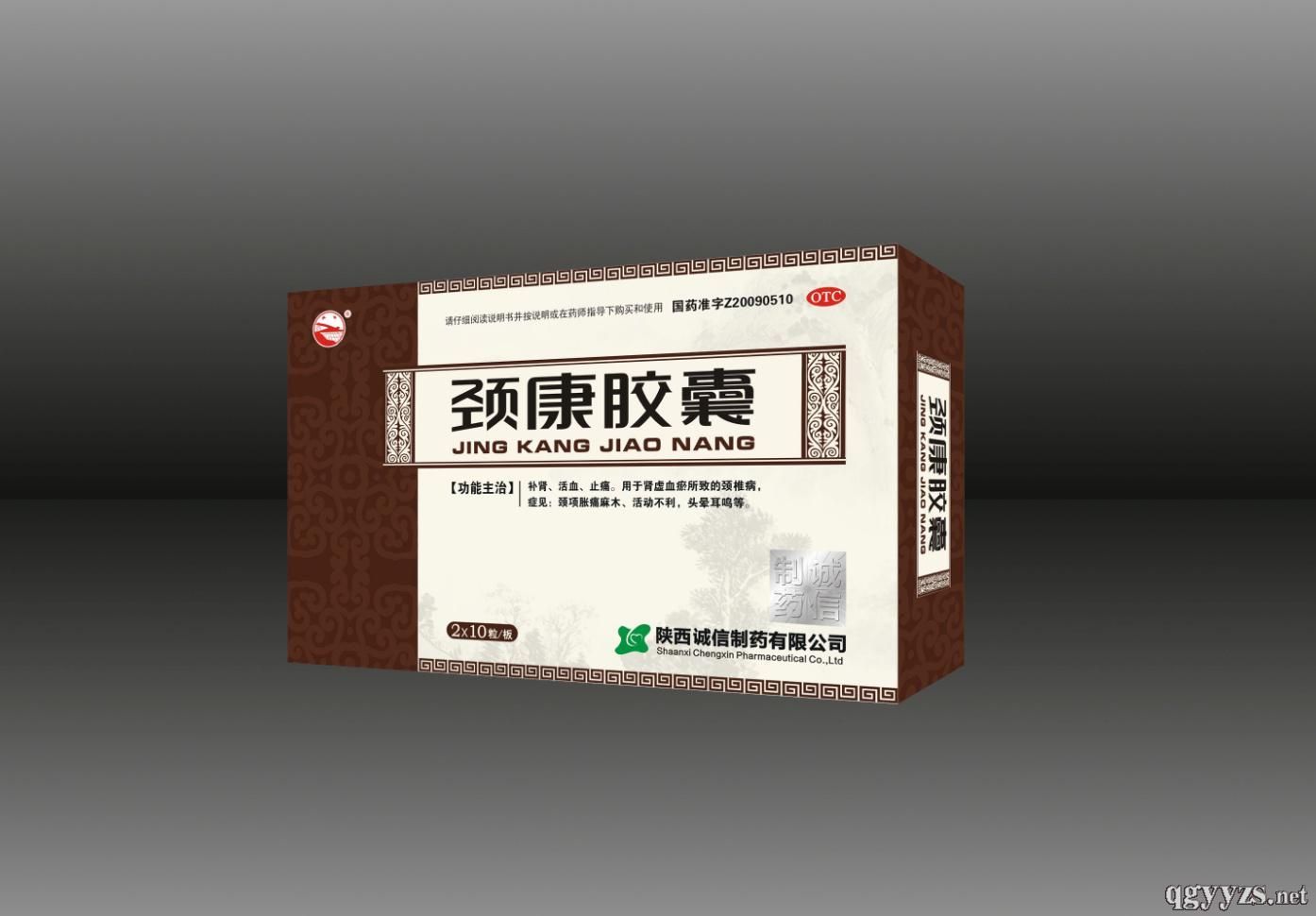 國藥準字Z20090510, 主要成分:熟地黃、何首烏、杜仲、鹿銜草、骨碎補(燙)、鉤藤、葛根、三七、萊菔子(炒) ,輔料為淀粉。功能主治:補腎、活血、止痛。用于腎虛血瘀所致的頸椎病,癥見:頸項脹痛麻木、活動不利,頭暈耳鳴等。具有五大賣點:1、補腎、活血、止痛三效合一;2、不傷脾胃,安全性高,適合長期服用;3、治療養(yǎng)護相結(jié)合,從根本解決頸椎病困擾;4、選料考究,工藝獨特;5、口服+外用,雙重療效。