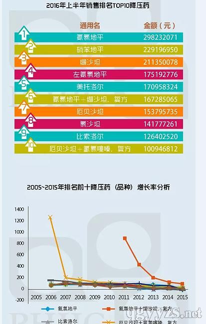 2016年,降壓藥銷售十強(qiáng)榜位居首位。