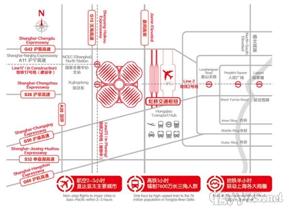 推薦選擇上海虹橋站為下車點國家會展中心距離【上海虹橋火車站】僅1.5公里,可由地鐵2號線直達。