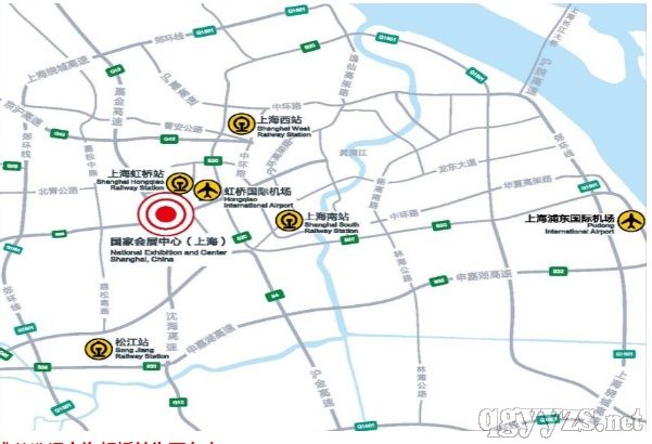 2、地面道路:北翟路/天山西路/仙霞西路方向→申長路或華翔路→崧澤大道→淶港路(國家會展中心東門出租下客區(qū))
