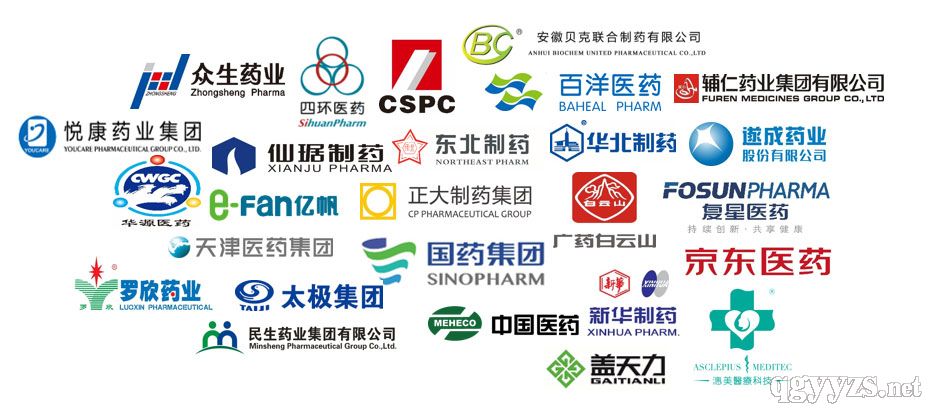 國(guó)藥集團(tuán)、上藥集團(tuán)、華潤(rùn)醫(yī)藥、中國(guó)醫(yī)藥、瑞康醫(yī)藥、中國(guó)中藥、廣藥集團(tuán)、潓美醫(yī)療、華北制藥、瑞陽(yáng)制藥、華佗國(guó)藥、安徽貝克、億帆醫(yī)藥、安徽華源、亞寶藥業(yè)、廣藥集團(tuán)、正大制藥、人福醫(yī)藥、山西振東、蓋天力、山東魯抗、辰欣醫(yī)藥、山東方健、山東潤(rùn)澤、浙江仙琚、悅康藥業(yè)、百洋醫(yī)藥、廣發(fā)制藥、長(zhǎng)白山制藥、廣東眾生、輔仁藥業(yè)、樂(lè)氏同仁、河南太龍、貴州富華、遂成藥業(yè)、山東新華、晉城海斯、湖北紅珊瑚、天津青松、回音必、江蘇恩華、紫鑫藥業(yè)、神奇制藥、百善藥業(yè)、廣印堂、寧波大紅鷹等